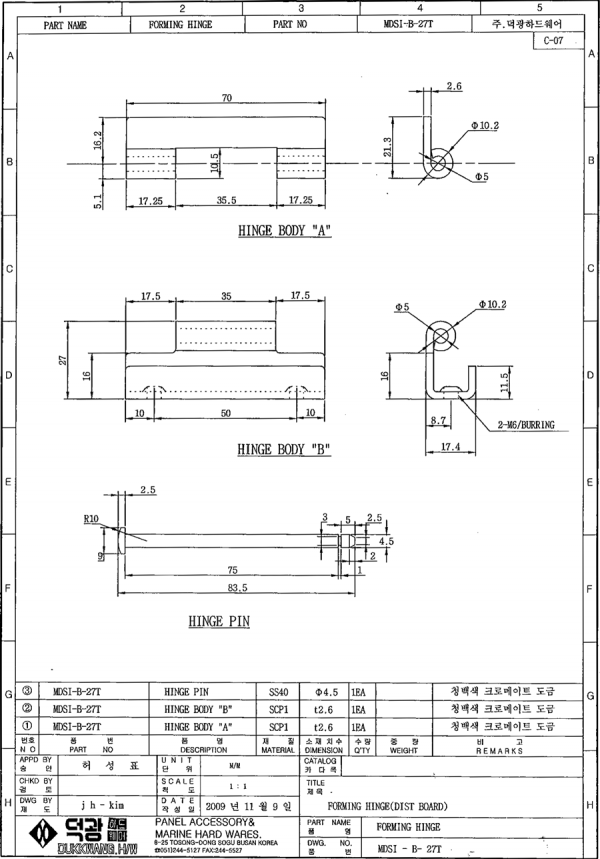 B파트 힌지 & 정첩