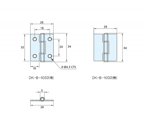 B파트 | DK-B-1032 페이지 정보 작성자 최고관리자 작성일16-11-21 21:48 조회2,290회 관련링크 이전글 다음글 목록 본문 BUTT HINGE ■ 재 질 : SUS304 ■ 용 도 : 공작기계, 각종 산업기기 등 이전글 다음글 목록