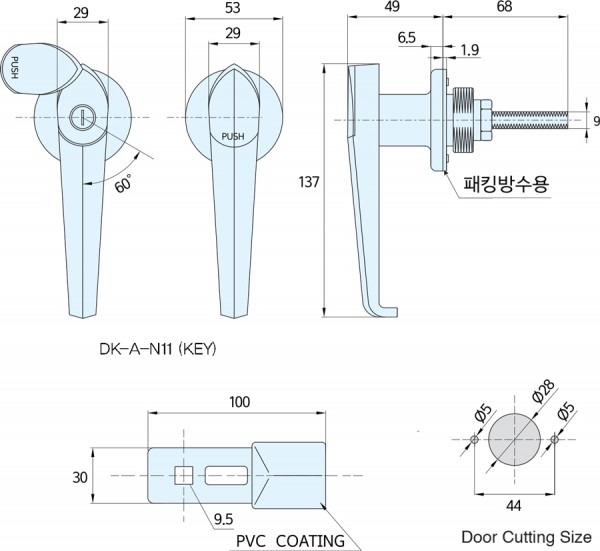A파트 | DK-A-N11 페이지 정보 작성자 최고관리자 작성일16-10-25 01:58 조회2,531회 관련링크 이전글 다음글 목록 본문 PUSH HANDLE LOCKER ■ 재질 : 아연합금 (ZDC) ■ 표면처리 : 크롬도금(Cr) ■ 특 징 : 좌·우 겸용, N-11 : 키있음 ■ 용 도 : 옥내·외 소형 분전반 외 (PUSH HANDLE TYPE) 이전글 다음글 목록